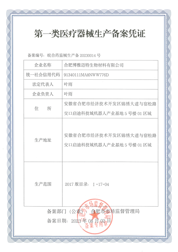 合肥博雅迈特生物材料有限公司由北京大学长江学者郑玉峰教授发起,是一家以先进生物材料技术为核心,专注于为医疗器械行业赋能的国家级高新技术企业。公司以“应用生物材料重塑健康人体”为使命,致力于通过创新生物材料技术和医疗器械产品推动临床应用。